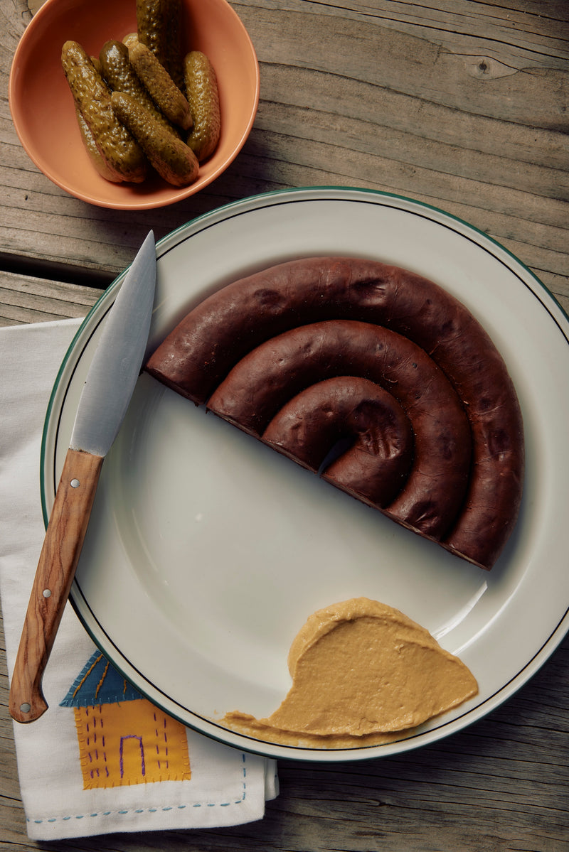 Boudin Noir is a type of classic French charcuterie. A mixture of rare breed pork, apples, brandy, cream, cinnamon and mace is made into a coil and then smoked over German beechwood. It’s deeply fragrant and savoury. Sear on both sides in a hot pan and serve it with Dijon mustard and cornichons with a glass of cider for an apéritif. If you’re feeling particularly adventurous in the kitchen, you could even make an onion tart tatin to have alongside.