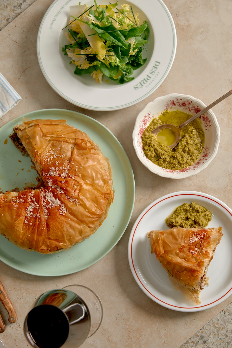 This warmly spiced lamb pie was just the thing for sharing over the Easter weekend. Slow-cooked lamb, fragrant with Ras El Hanout, studded with currants and almonds for a touch of sweetness and crunch, all wrapped in flaky filo pastry.