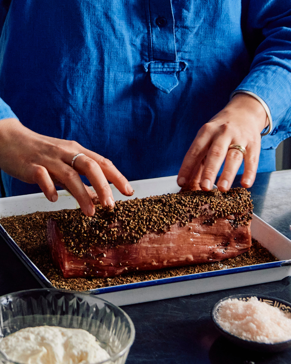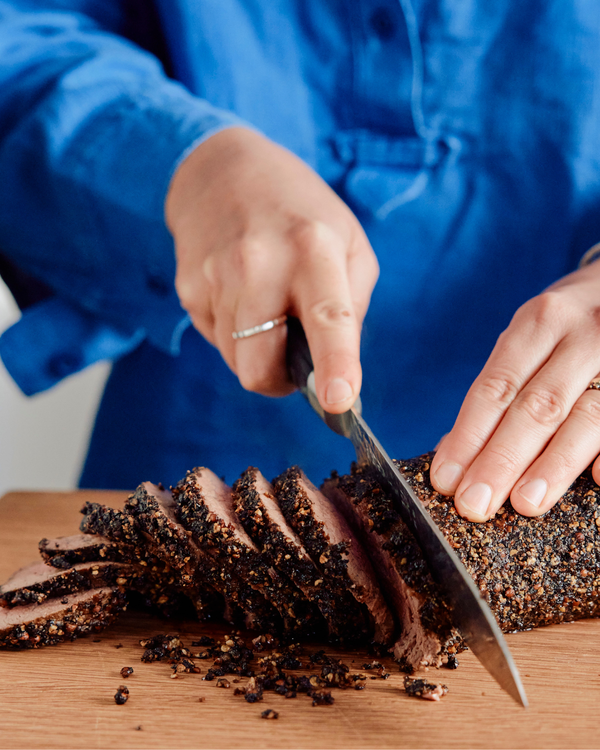 This whole beef eye fillet is a summer take on that dish, with a nod to another family recipe - my grandfather’s horseradish cream. This dish is a riff on the two, made for summer days, celebrating with family and friends. The eye fillet is roasted in a hot oven, left to rest and sliced thinly. A bed of rocket, a glug of good olive oil and a squeeze of lemon is all that’s needed in addition to a generous spoon of horseradish cream. Best of all, it is best served at room temperature, meaning it’s a laid-back appetiser or main course."