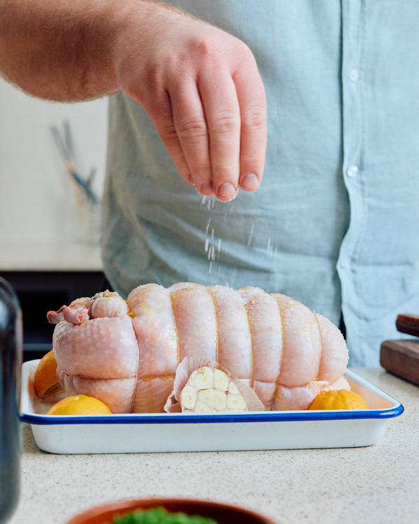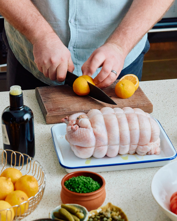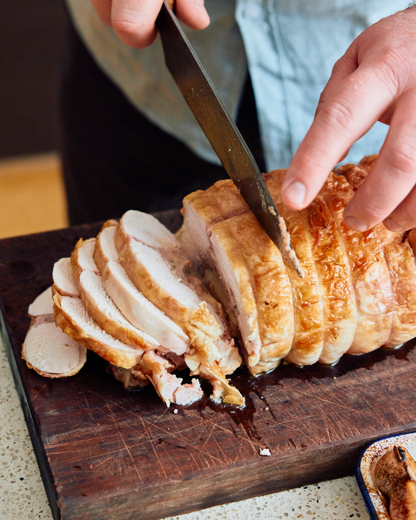 When I started out as an apprentice butcher, one of the first things I learned to make was a chicken ballotine — a whole chicken that’s been deboned, stuffed, and rolled before roasting. They’re brilliant to carve, hard to overcook and make such a satisfying centrepiece for the Christmas table.